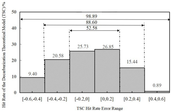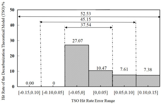 Subsequently, the predicted TSO carbon content from the hybrid model was used as an input parameter for the kinetic process model. The difference between the predicted and actual measured TSO values was calculated to evaluate the hit rate. The resulting hit rate of the coupled model is presented in Table 7, and the corresponding histogram is shown in Figure 2.
