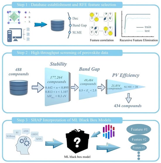 Beyond conventional experimental screening, perovskite materials can also be screened using materials databases, molecular simulations, and DFT. Furthermore, high-throughput simulations that integrate automated workflows and parallel computing enable batch evaluation and selection across vast candidate spaces.