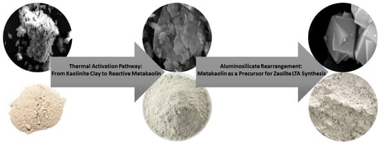 The transformation of kaolin into LTA zeolite entails a stepwise procedure of thermal activation followed by alkaline hydrothermal synthesis, each facilitating critical structural and phase changes. This technique facilitates the synthesis of highly reactive and functional materials for sophisticated industrial applications. The thermal Activation Pathway involves: