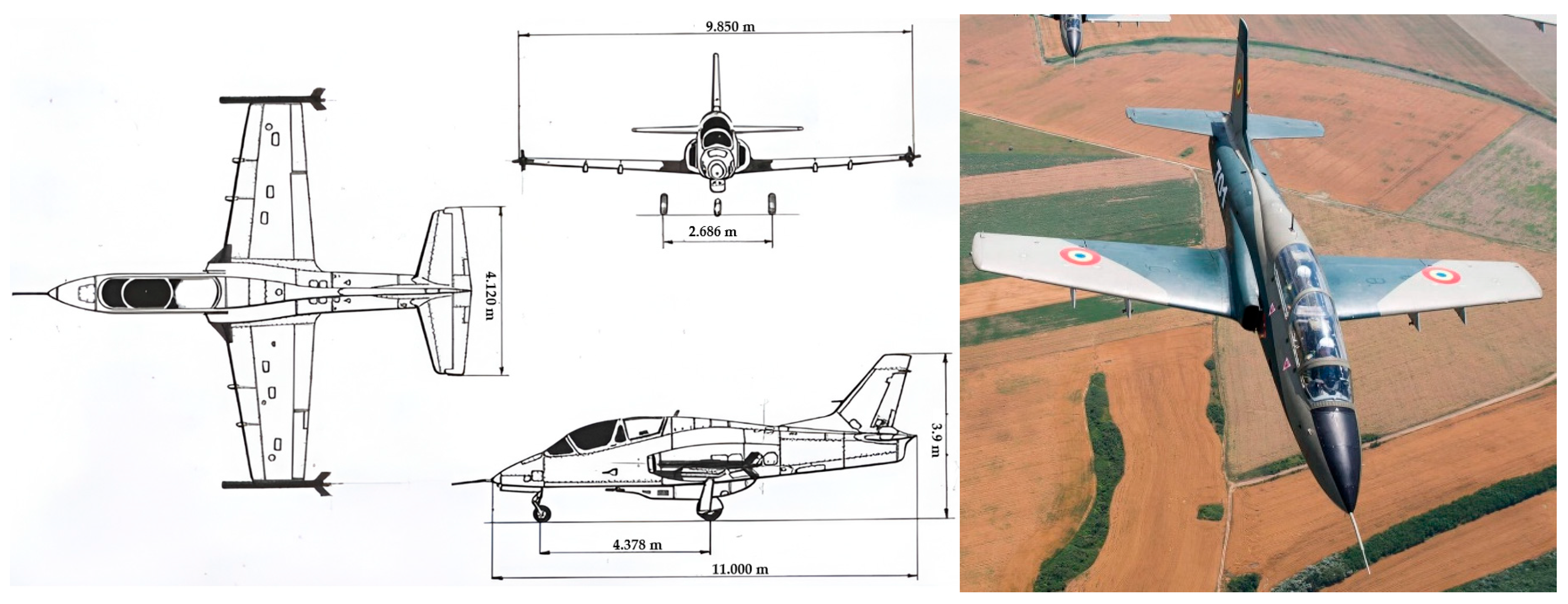 The baseline variant is powered by a Rolls-Royce Viper 632-41 turbojet, providing maximum thrust of around 18 kN at ISA sea level conditions and enabling speeds of approximately 850–865 km/h with a service ceiling of about 12,900 m. Through modernization programs, remotorized versions (e.g., with the Viper 680-43) demonstrated improved performance, including higher climb rates, increased range (up to 1590 km), and reduced take-off and landing distances. A detailed description can be found in Refs. [30,31].