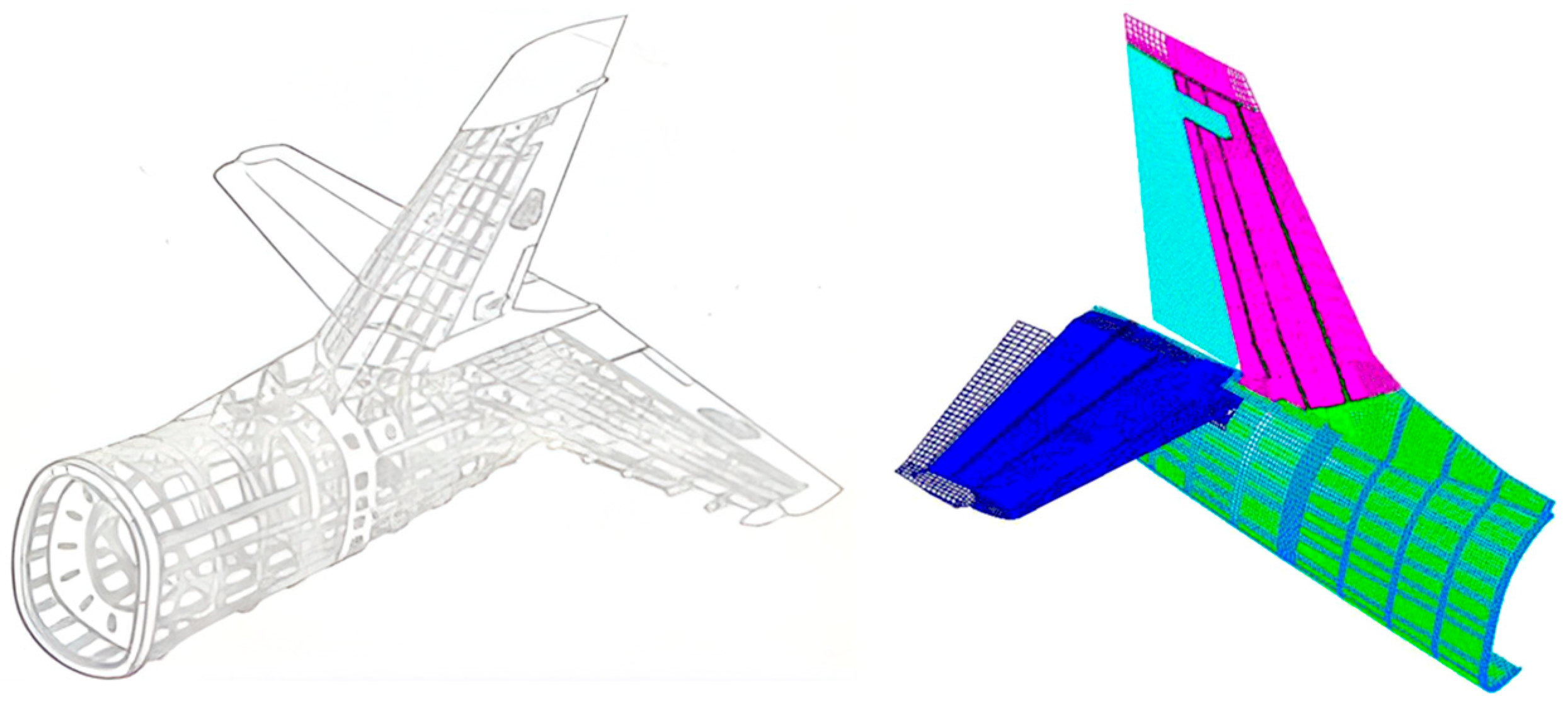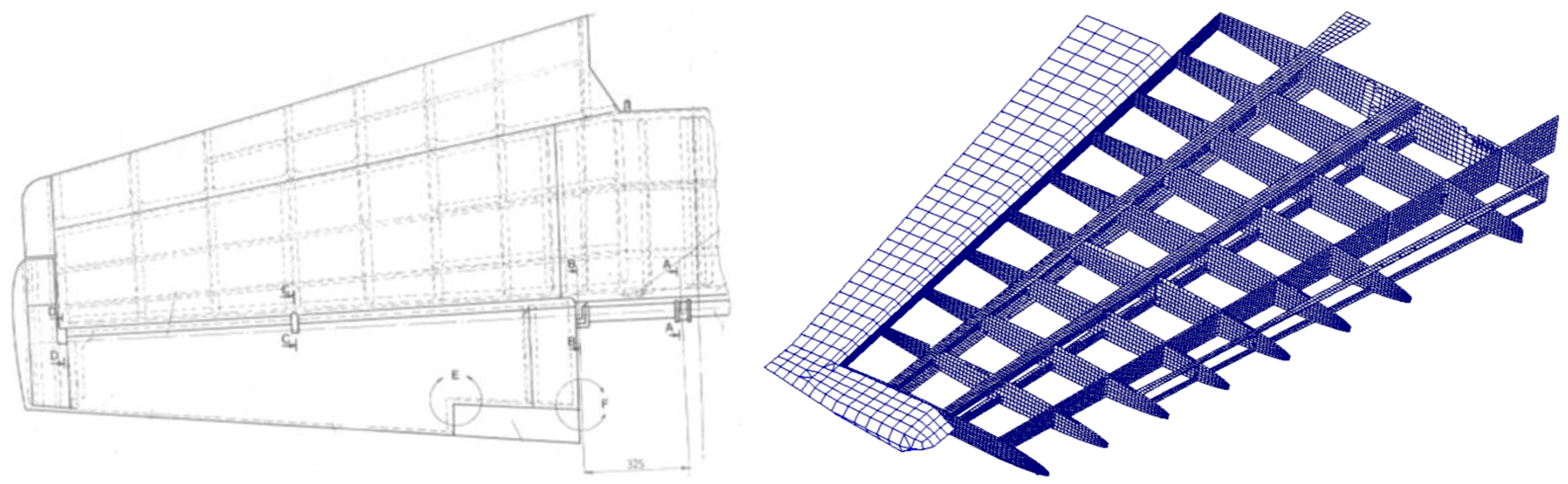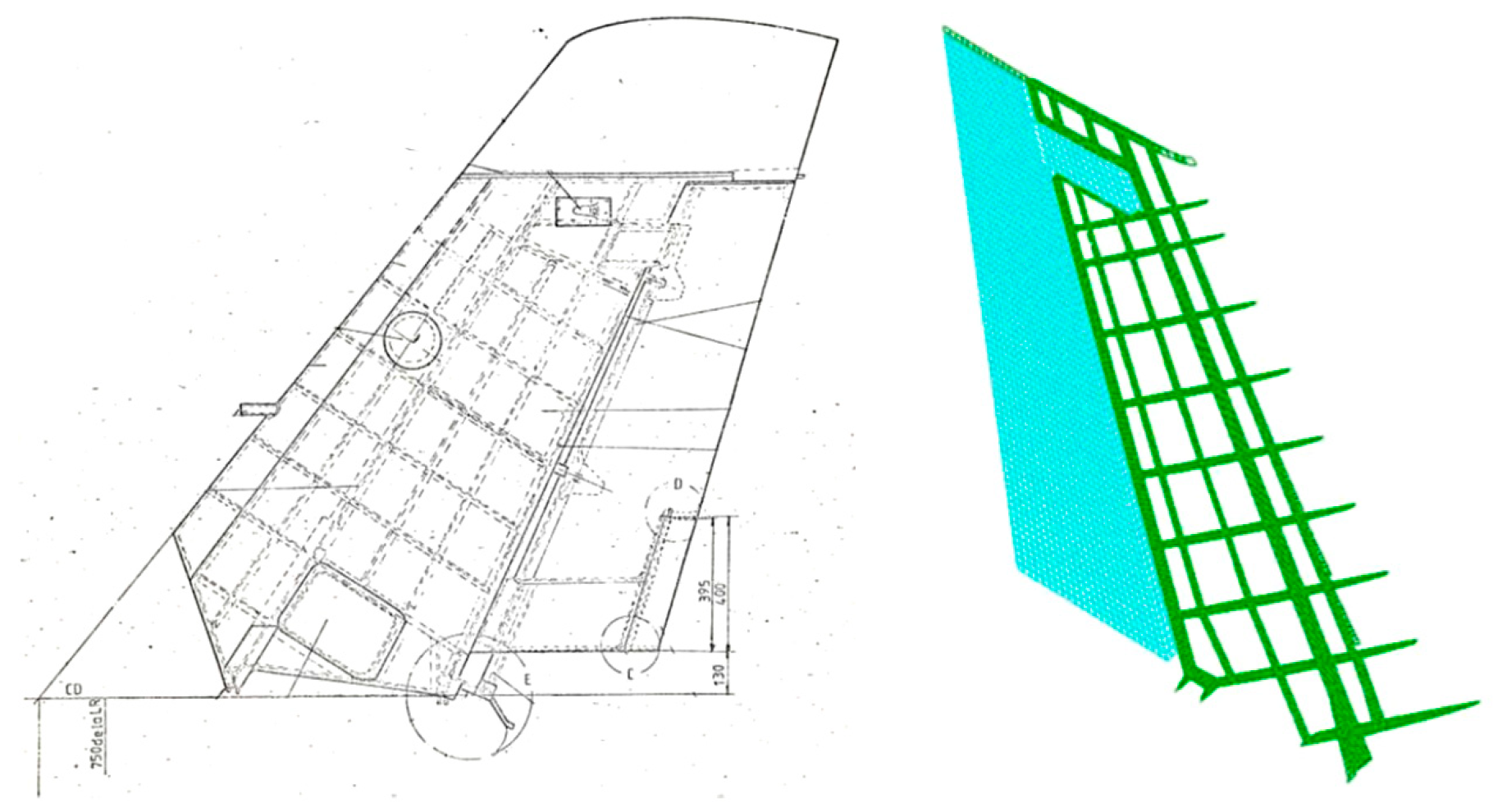 Figure 7. Structure of the vertical tailplane and FEM model.