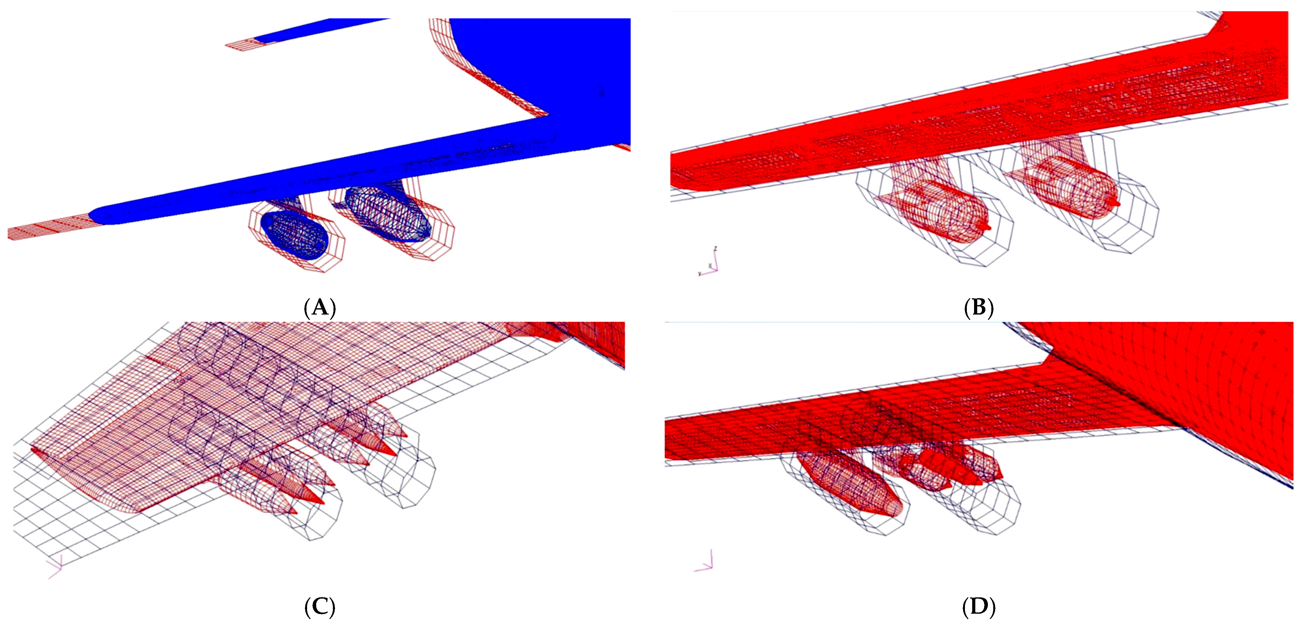 34. Yu, Q.; Damodaran, M.; Khoo, B.C. Predicting wing–pylon–nacelle configuration flutter based on finite element and aerodynamic panel methods. Adv. Aerodyn. 2023, 5, 52. [Google Scholar] [CrossRef]