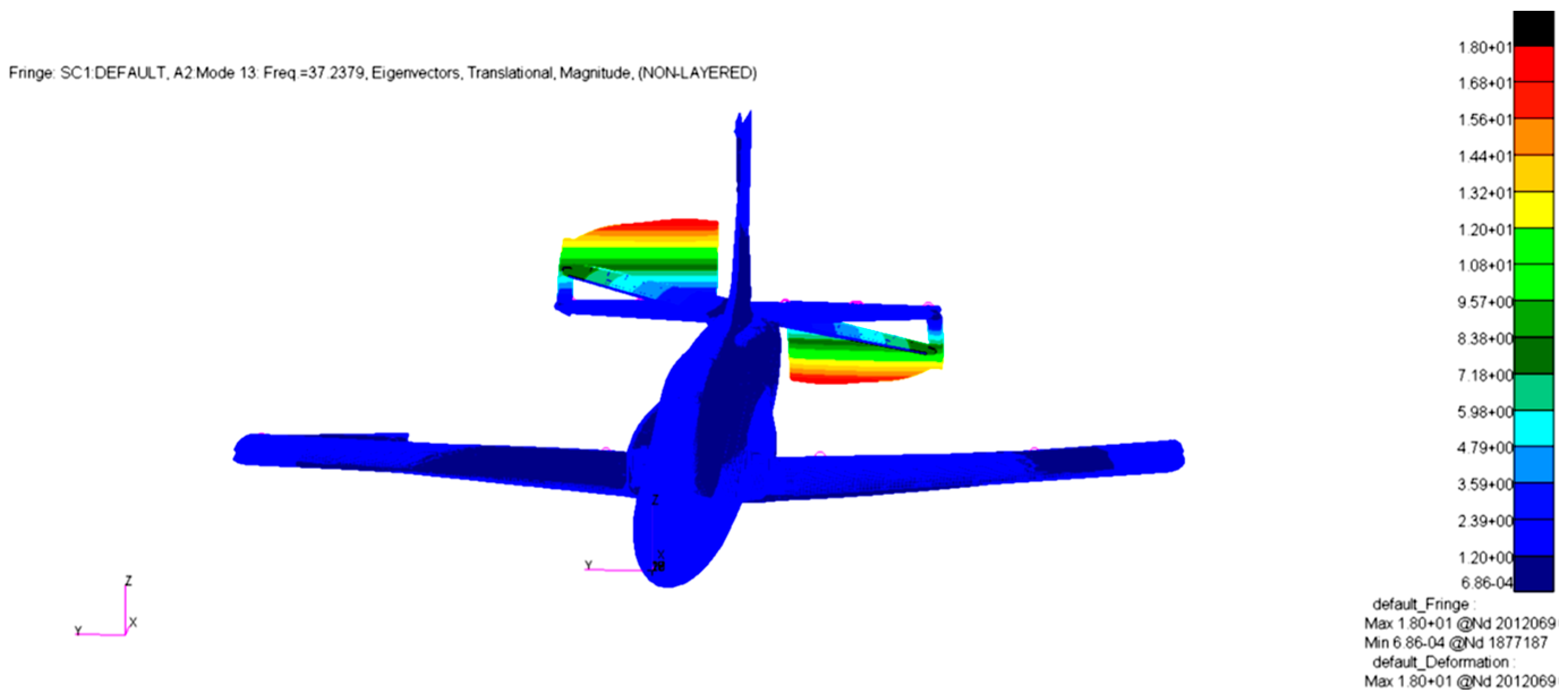 Figure 37. Antisymmetric horizontal tail bending mode: f = 37.2379 Hz.