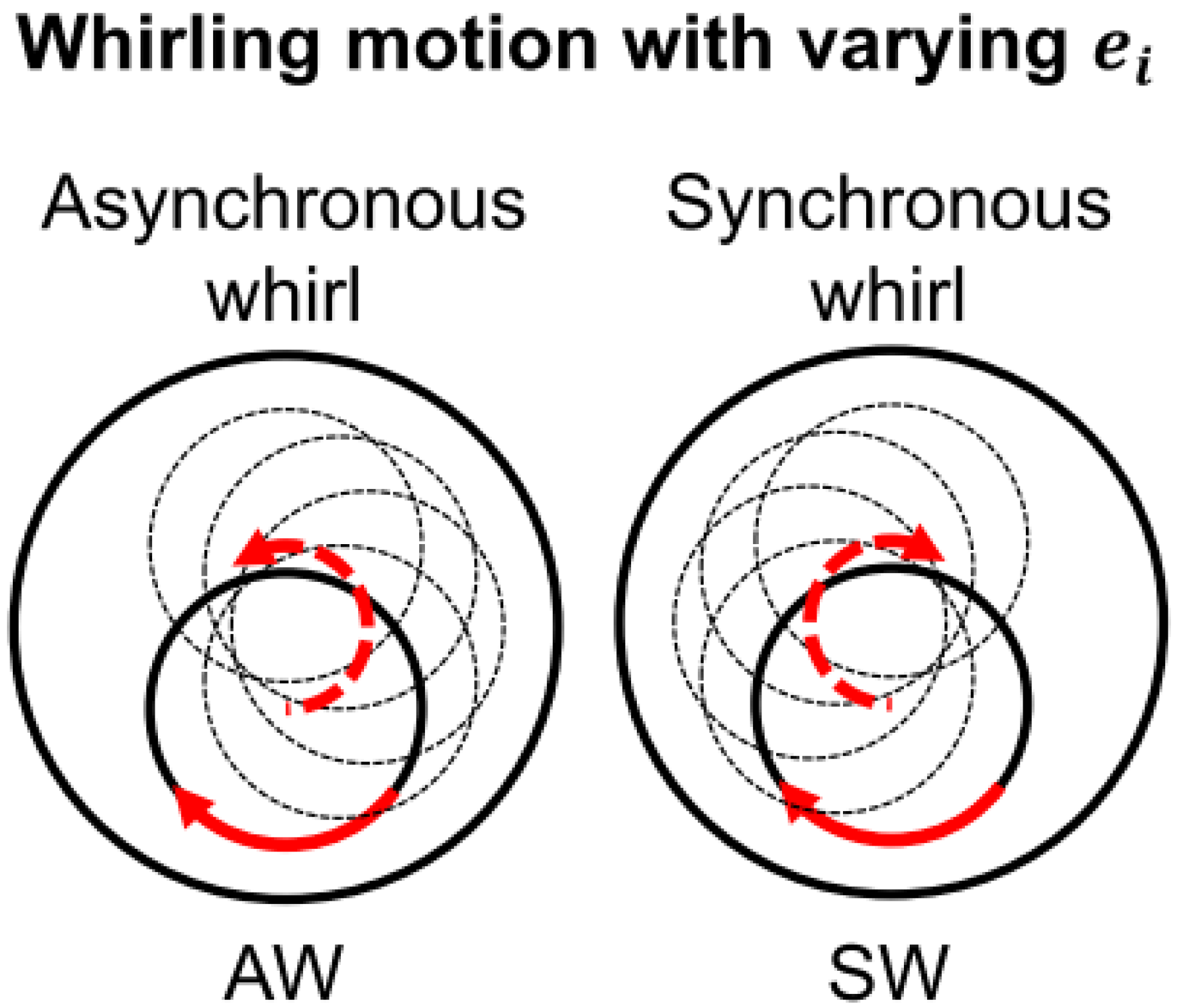 12] conducted laboratory setups to explore the influence of drill pipe rotation on cuttings transport. In their study, “rotation” denotes a combination of simple drill pipe rotation around its axis and more intricate lateral motion, with two distinct patterns: Synchronous Whirl (SW), where the tool joint slides on the hole/casing wall consistently facing the same side toward the outer wall, and Asynchronous Whirl (AW), or backward whirl, where the tool joint rolls along the hole/casing wall without slipping, as illustrated in