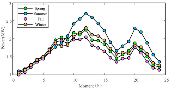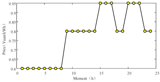 The charging price constraint modeled in this paper is that the charging price at different moments in each CS during each typical day fluctuates up and down based on a determined price curve, and the average charging price is equal to that charging curve, as follows: