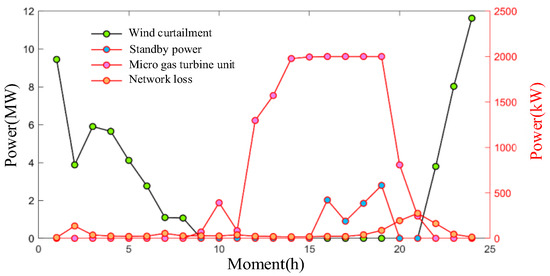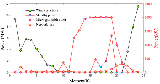 where is the number of typical days, is the cost coefficient of thermal unit output, is the number of thermal units, is the actual output of the eth thermal unit, is the price of purchasing reserve power, is the amount of electricity purchased, and are the number of wind farms and photovoltaic (PV) module, and are the cost coefficient of wind power and PV curtailment, and are the curtailed power of the wind farm PV, is the set of grid branches, is the cost coefficient of network losses, is the resistance value of branch xy, and is the square of the current of branch xy.