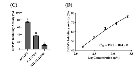 - Mu, X.; Wang, R.; Cheng, C.; Ma, Y.; Zhang, Y.; Lu, W. Preparation, structural properties, and in vitro and in vivo activities of peptides against dipeptidyl peptidase IV (DPP-IV) and α-glucosidase: A general review. Crit. Rev. Food Sci. Nutr. 2024, 64, 9844–9858. [Google Scholar] [CrossRef]