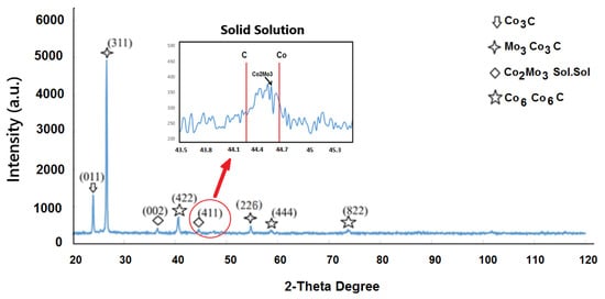 Graphite (C), cobalt (Co), and molybdenum (Mo) powders (all from Sigma-Aldrich (Merck KGaA), St. Louis, MO, USA) were used as received. Graphite (99.99% purity) had an average particle size µm, molybdenum powder (99.8% purity) had a particle size of 1 to 5 µm, and cobalt powder (99.8% purity) had a particle size µm.