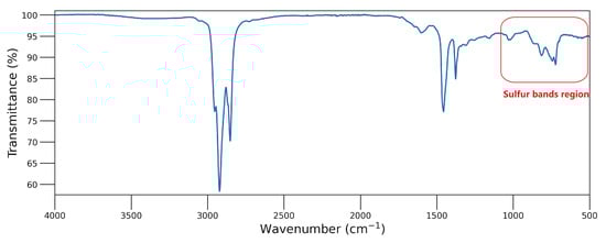 FTIR spectrum of the initial heavy crude (untreated reference). The analysis focuses on the window that contains bands of sulfur-containing groups.