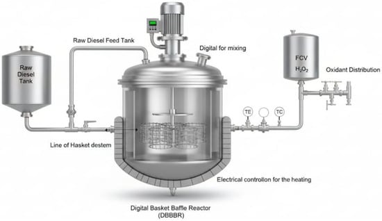 - Humadi, J.I.; Nawaf, A.T.; Jarullah, A.T.; Ahmed, M.A.; Hameed, S.A.; Mujtaba, I.M. Design of new nano-catalysts and digital basket reactor for oxidative desulfurization of fuel: Experiments and modelling. Chem. Eng. Res. Des. 2023, 190, 634–650. [Google Scholar] [CrossRef]