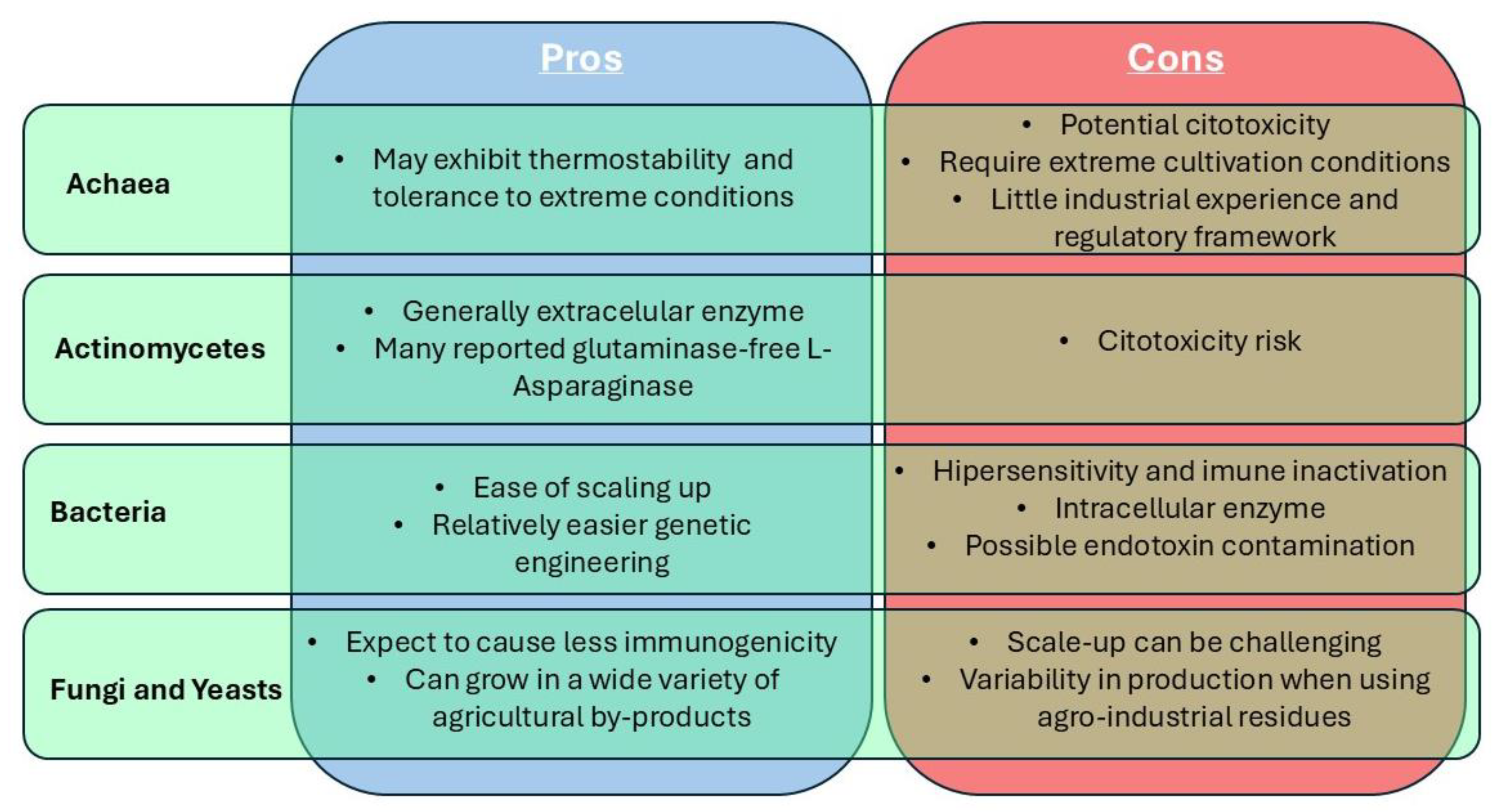 - Orabi, H.M.; El-Fakharany, E.M.; Abdelkhalek, E.S.; Sidkey, N.M. L-asparaginase and L-Glutaminase: Sources, Production, and Applications in Medicine and Industry. J. Microbiol. Biotechnol. Food Sci. 2019, 9, 179. [Google Scholar] [CrossRef]