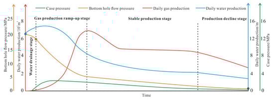 Guided by established frameworks for deep CBM well production and the specific engineering context of the Ordos Basin, we categorize the production process in the Daning-Jixian Block into four stages: dewatering, ramp-up, stable production, and decline (Figure 3).