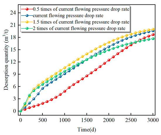 Variation in CBM Desorption Volume under Different Flowing Pressure Drop Rates.