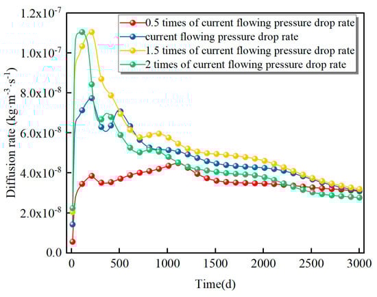 Variation in CBM Diffusion Rate under Different Flowing Pressure Drop Rates.