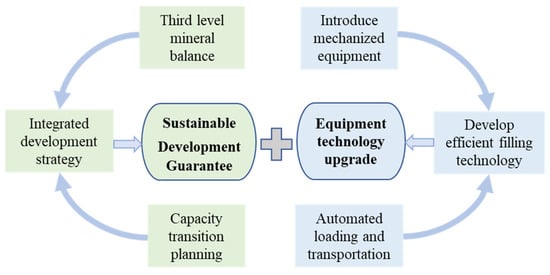 Based on the resource-endowment conditions of each mine, researchers in the mining sector need to develop new high-efficiency and low-cost backfill mining technologies that meet the existing mining-technology conditions, introduce mechanized mining equipment, and maximize the recovery efficiency and mining intensity of resources. They also need to realize the full process mechanization of mining, excavation, loading, transportation, lifting, and beneficiation, reducing labor costs and safety risks; promote mechanized and intensive integrated development; and transform resource advantages into economic advantages (see Figure 5).