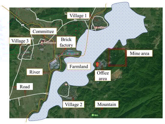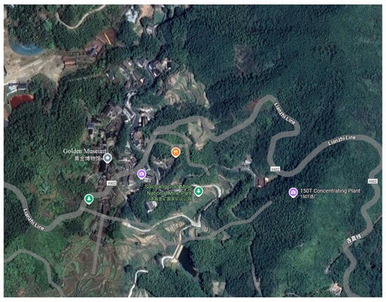 Henan Zhongkuang Energy Co., Ltd., owns the Shishudi Gold Mine, located in Niutougou, Dazhang Township, Song County. It is an underground mine with a mining area of 19.8830 km2, a designed production capacity of 120,000 t/a, an average thickness of 3.39 m, and a dip angle of 30°, as shown in Figure 6.
