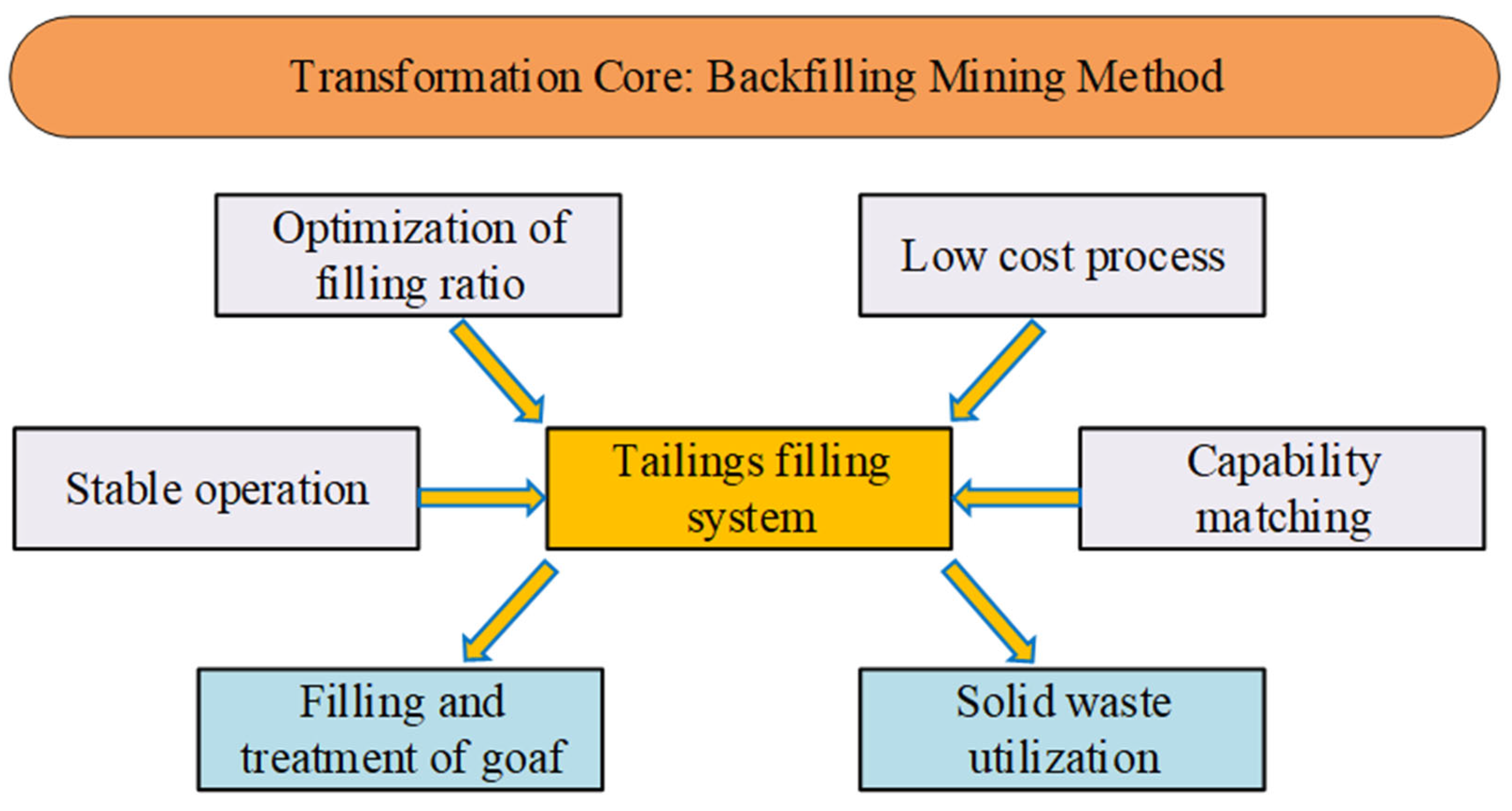 14]. However, a common challenge persists during this transition: many SMMs, both in China and globally, only adopt superficial adjustments—such as merely adding backfilling processes to the ore extraction stage or making isolated changes to mining methods—rather than implementing systematic overhauls. While these partial measures can marginally improve mining safety and achieve limited tailing utilization, they fall far short of meeting the comprehensive standards of green mining, which emphasize integrated efficiency, safety, and environmental sustainability.