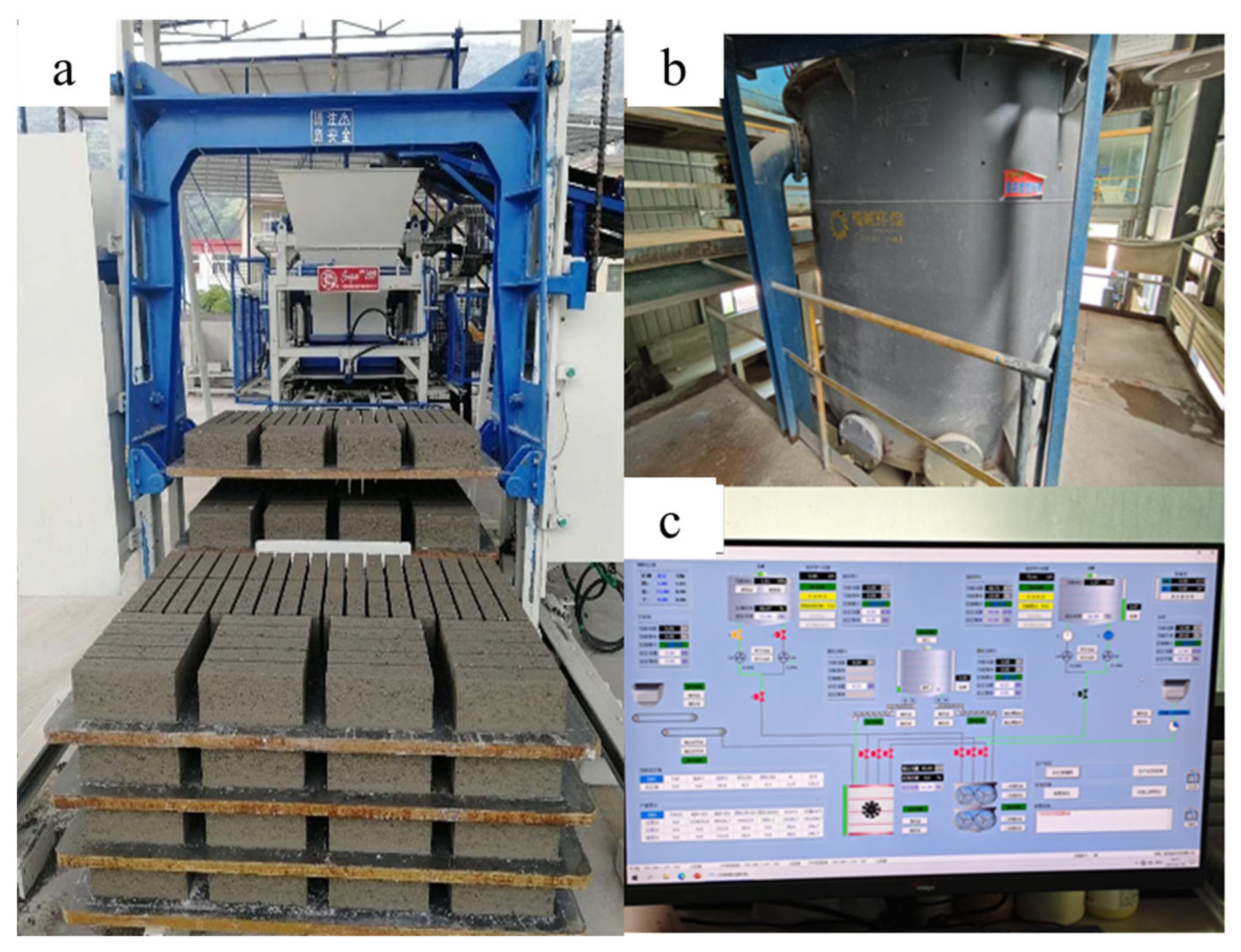 Figure 12a). Through the collaborative mode of “filling and brick making”, the enterprise not only solves the safety hazards in the goaf and avoids the environmental risks caused by the surface storage of tailings; it also achieves the goal of green mine construction with zero tailing emissions.