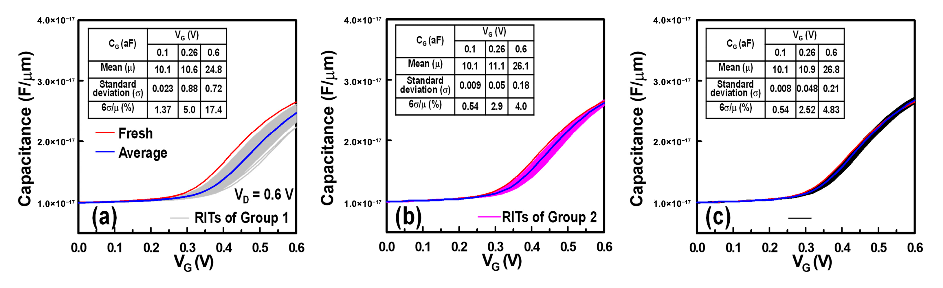 Average (μ) | Standard Deviation (σ) | 6σ/μ (%) | Average (μ) | Standard Deviation (σ) | 6σ/μ (%) | Average (μ) | Standard Deviation (σ) | 6σ/μ (%) | |