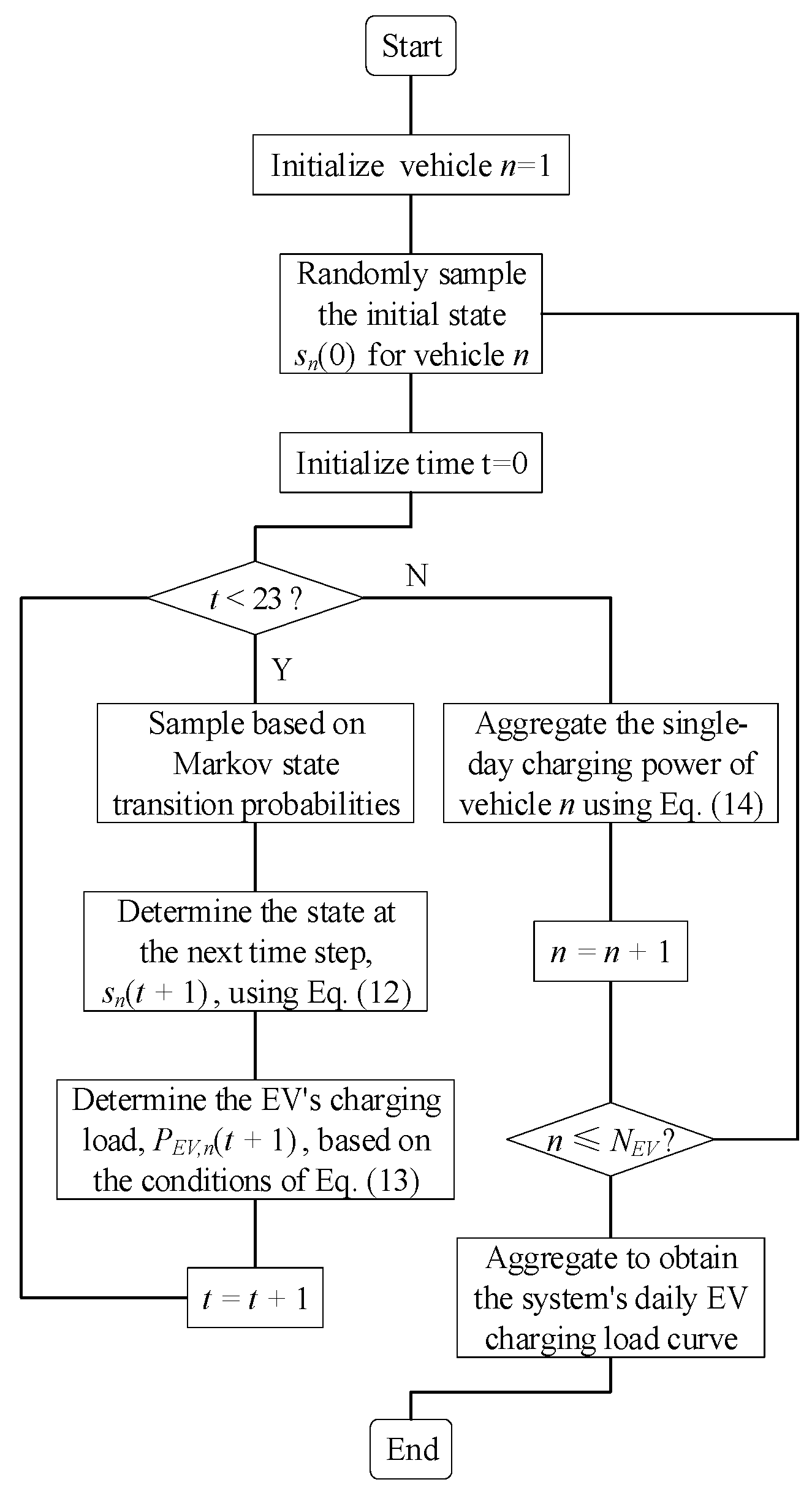 2.3. Charging Demand Scenario Generation Based on Monte Carlo Simulation