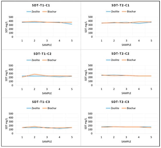 Zeolite’s porosity and high negative charge are well-documented advantages for low-cost ion removal [66,67]. However, no studies were found using zeolite and biochar from Agave tequilana Weber bagasse to analyze boron removal capacity in the aqueous phase. Therefore, this study aimed to evaluate boron removal using filters packed with natural zeolite and Agave tequilana Weber biochar. This information will be valuable for designing filters to remove contaminating ions, allowing water use for agriculture, contributing to sustainability, and improving the quality and availability of water resources.