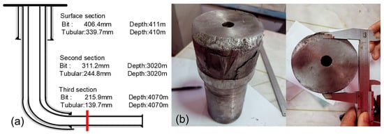 Information of the DS-1 well: (a) Casing structure; (b) Lead impression mold result.