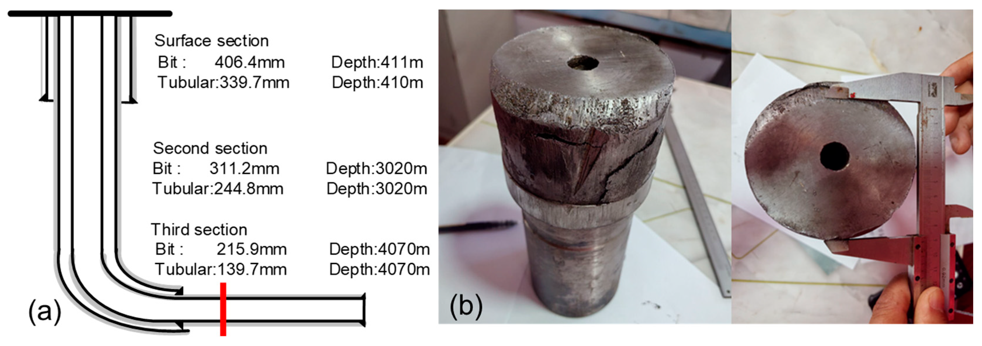 - Gu, C.W.; Xiang, M.; Li, M.; Zhu, H.F.; Zhang, Q.Y.; Xing, Z.X.; Wang, M.C.; Zhang, Z.; Yan, C.L. The Casing Collapse Mechanism in Salt Formations in Deepwater Fields in Brazil. Process 2025, 13, 301. [Google Scholar] [CrossRef]