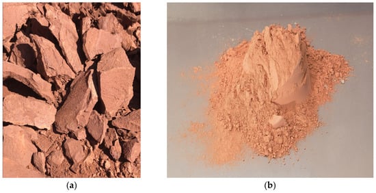 Raw red kaolin (KR) (a), red metakaolinite (MKR800) (b).