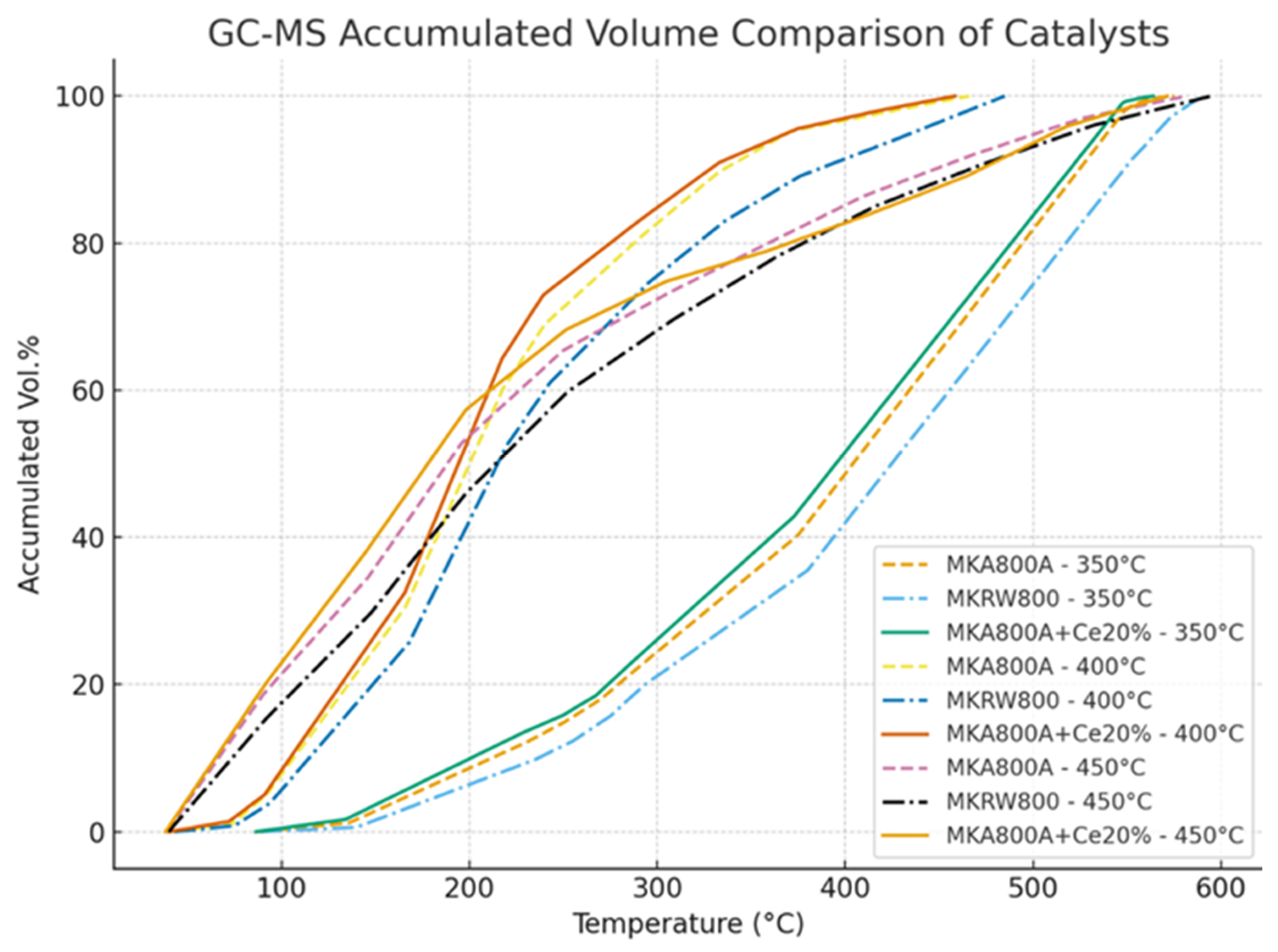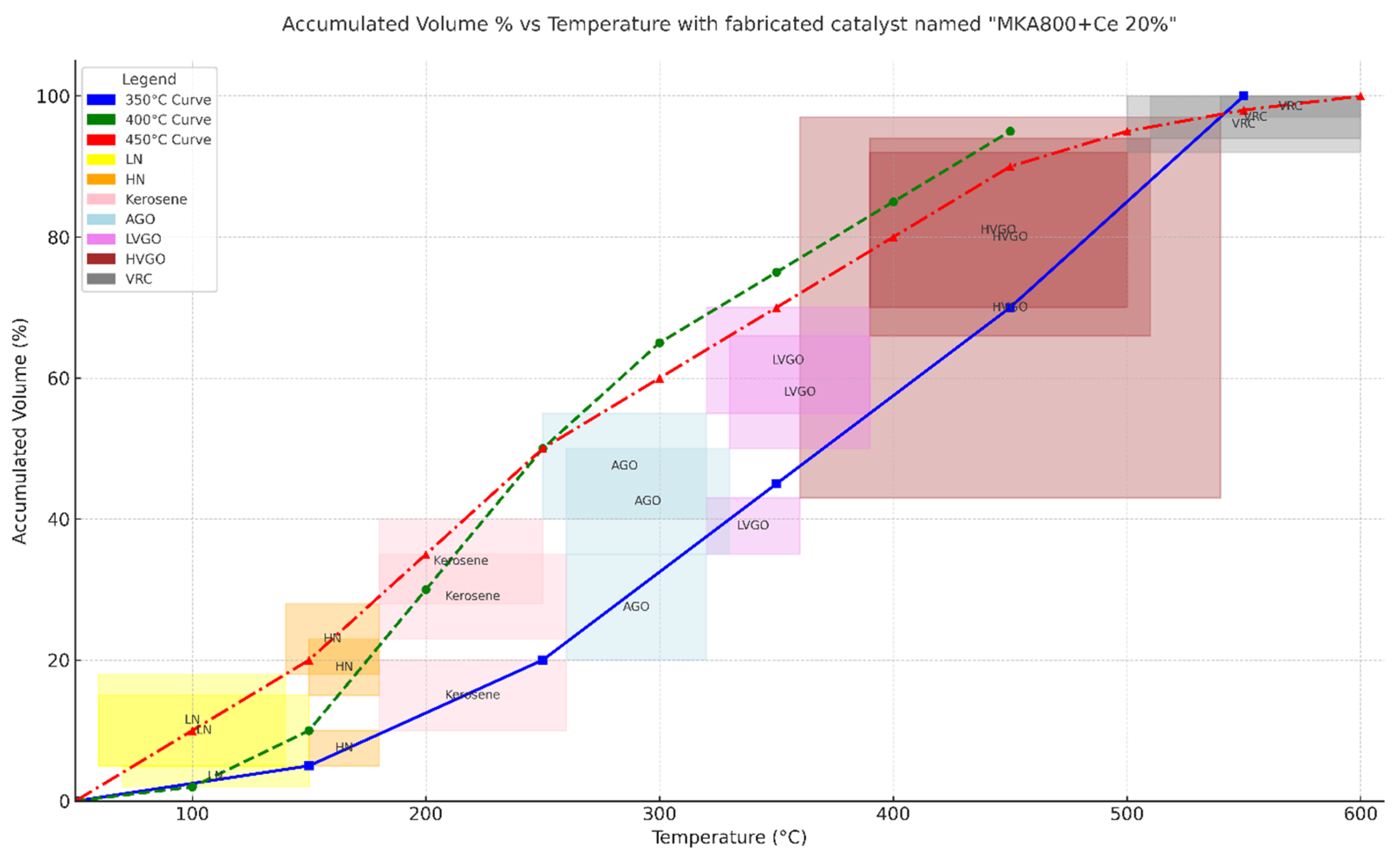 Cerium-modified catalysts have been studied in analogous hydroprocessing domains; however, their utilization in VR catalytic cracking, especially over MKA800, is still restricted. Razmgar et al. [