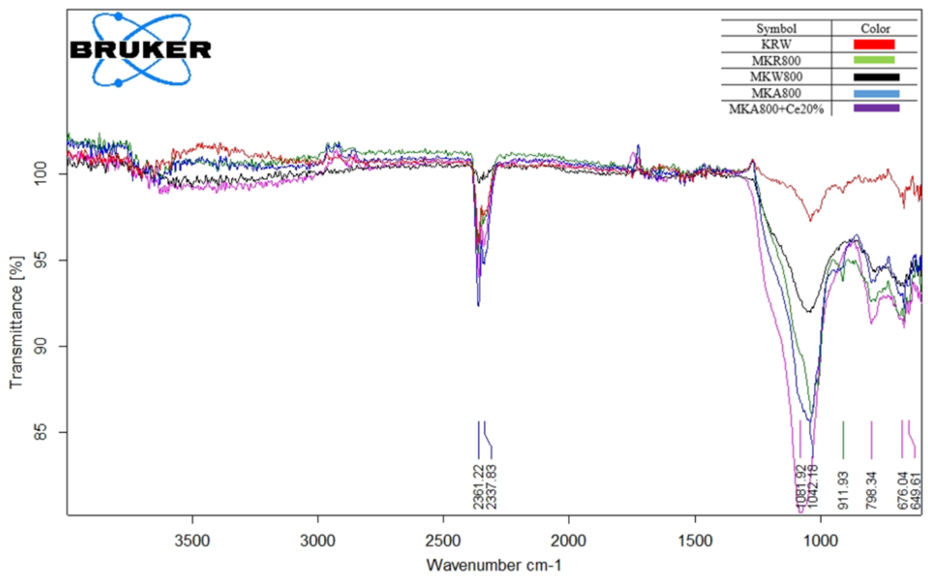 6]. These characteristics render cerium an attractive option for enhancing cracking performance when incorporated into kaolinite-based supports.