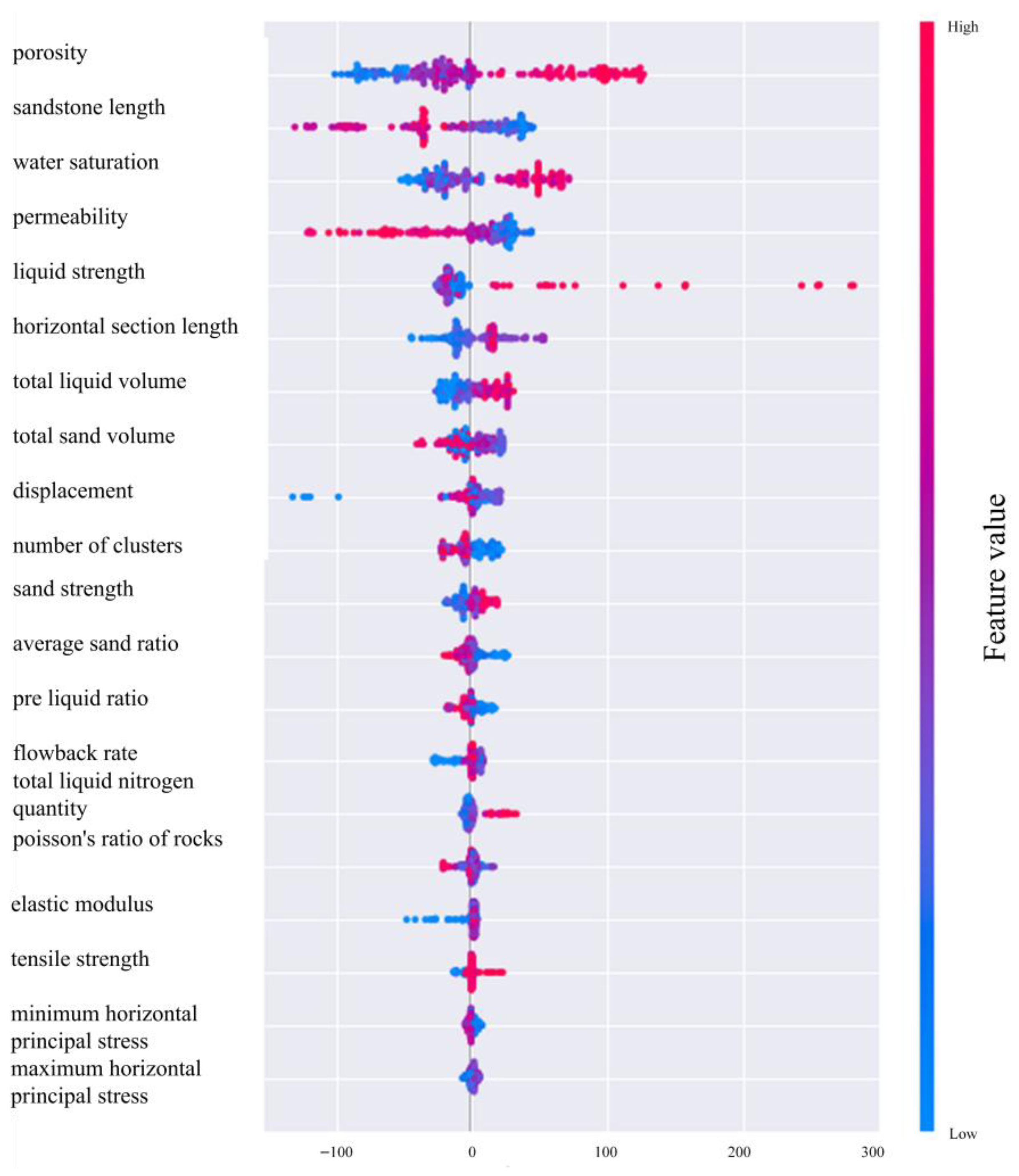 2 values of these two ensemble models are 0.923 and 0.889, respectively, which are 26.09% and 21.44% higher than the optimal individual base learner XGBoost. Therefore, in terms of predicting production capacity after tight-gas pressure, the performance of these two integrated models has significantly improved compared to individual machine learning models.