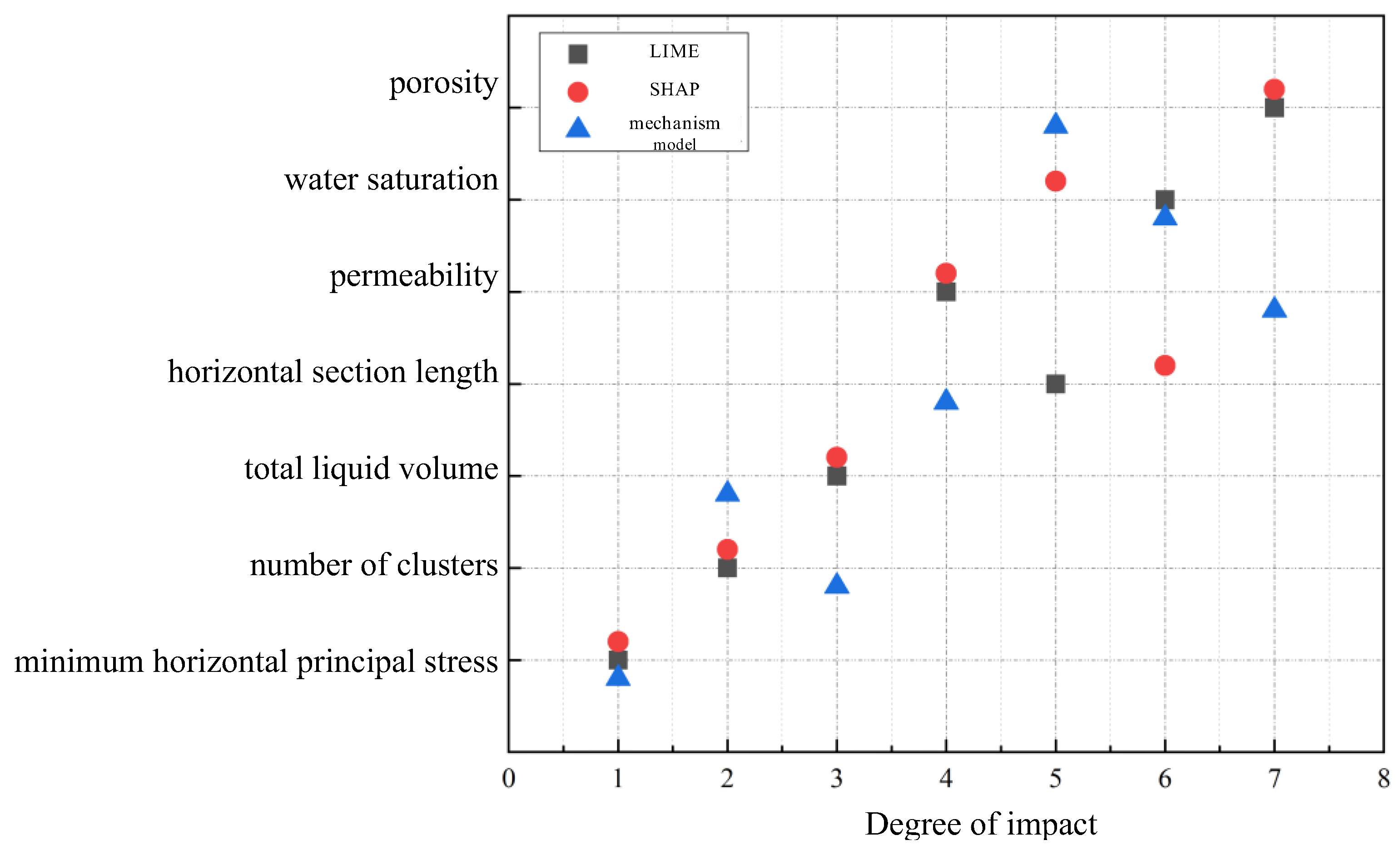 Our model is positioned as a design-stage, data-driven complement: given pre-job geological/geomechanical descriptors and treatment parameters, it produces rapid forecasts of early-time productivity for screening and design optimization. A dedicated interpretability study presented later further examines the learned importance pattern (water saturation, number of clusters, total fracturing liquid volume) and shows its consistency with physics-based expectations while reflecting operational variability. Common approach contrast is showon in
