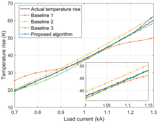 Comparison of temperature rise prediction results of various algorithms under fixed current.