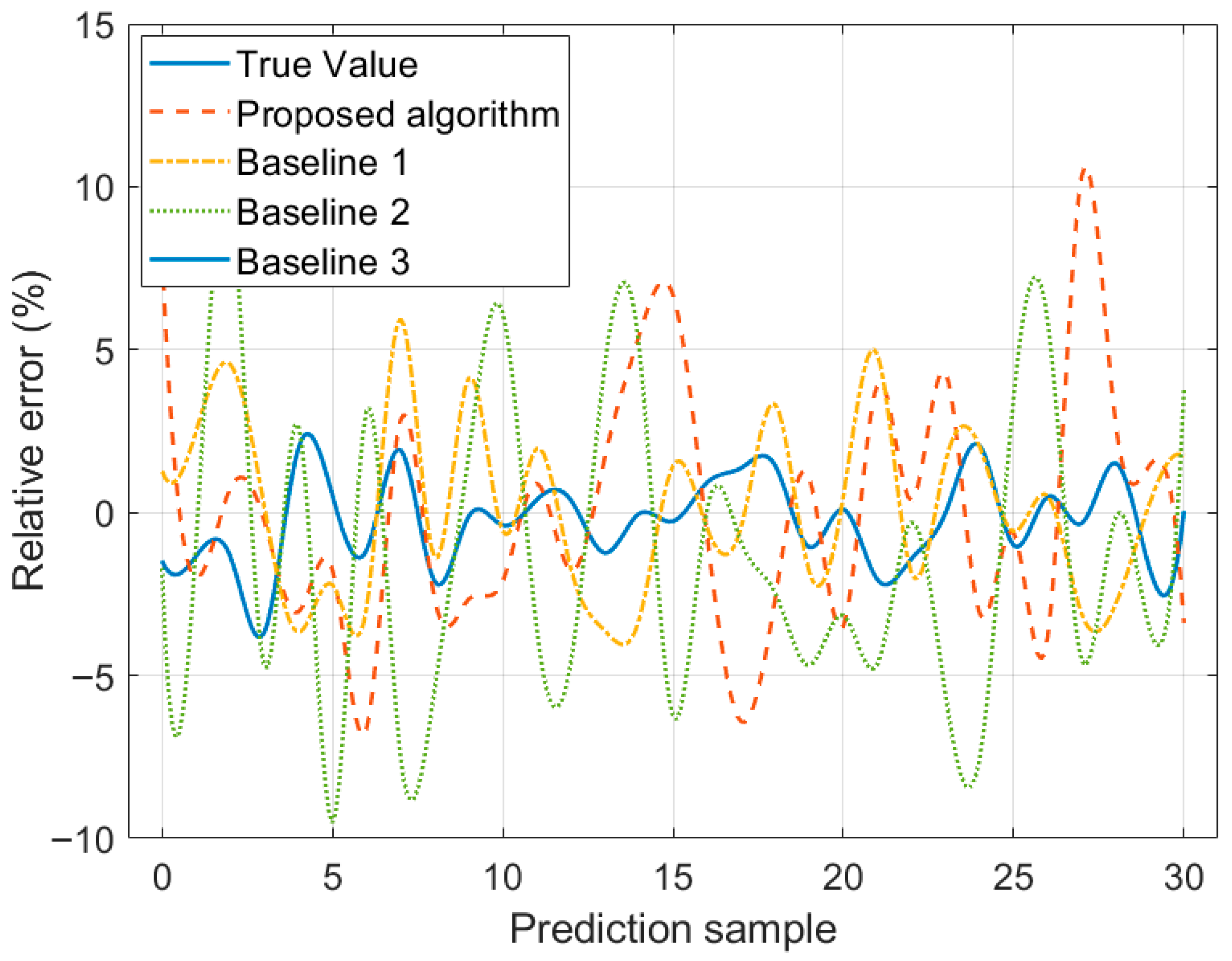 37]: It employs an improved LSTM network with an attention mechanism for evaluation. Baseline 2 can effectively capture the temporal features in the data, but lacks an effective correction mechanism for systematic prediction biases that may be caused by complex nonlinear disturbance factors. Baseline 3 [