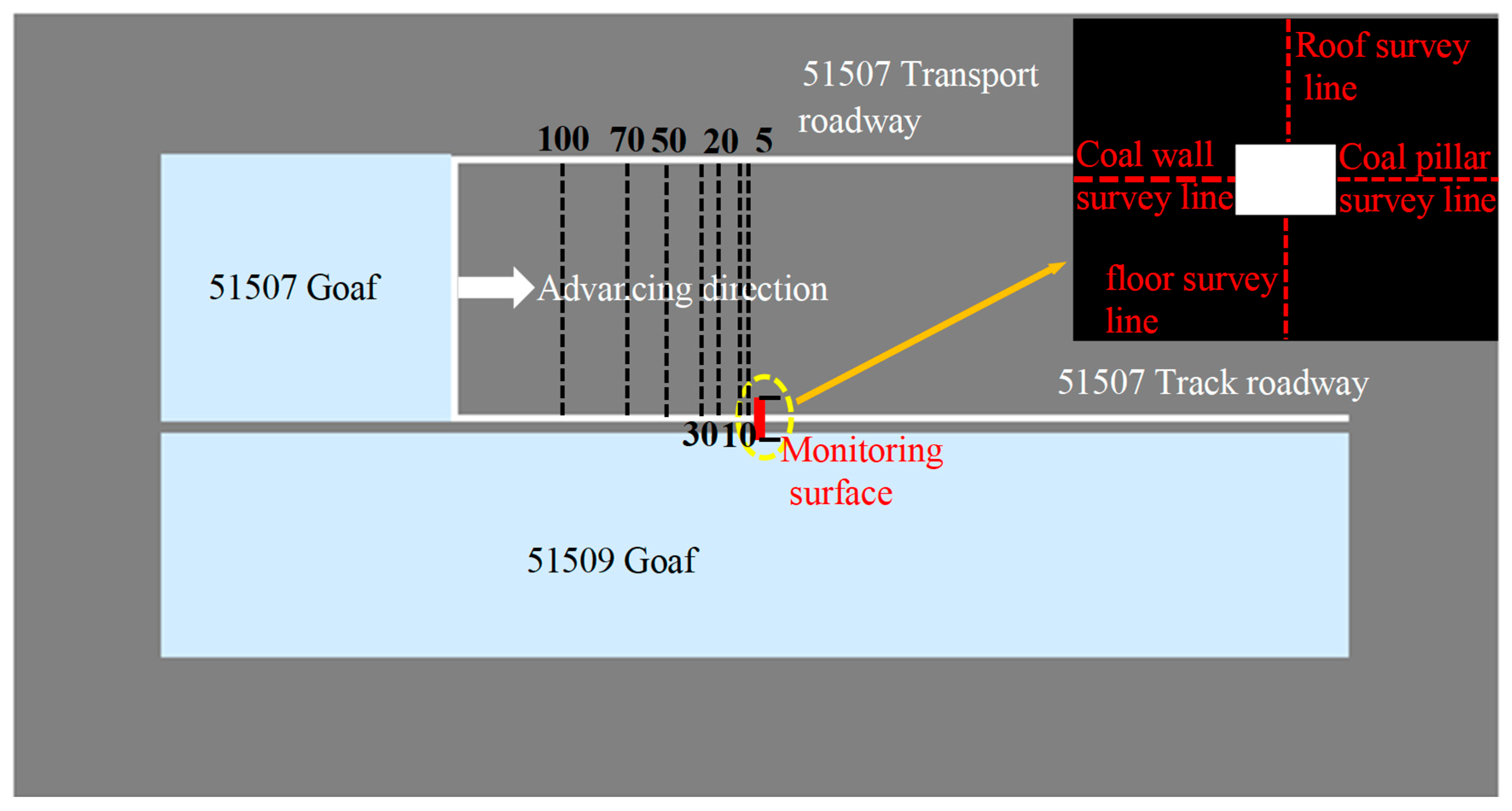 - Wu, X.Y.; Liu, H.T.; Li, J.W.; Guo, X.F.; Lv, K.; Wang, J.Y. Space-time Evolutionary Regularity of Plastic Zone and Stability Control in Repetitive Mining Roadway. J. China Coal Soc. 2020, 45, 3389–3400. [Google Scholar] [CrossRef]
