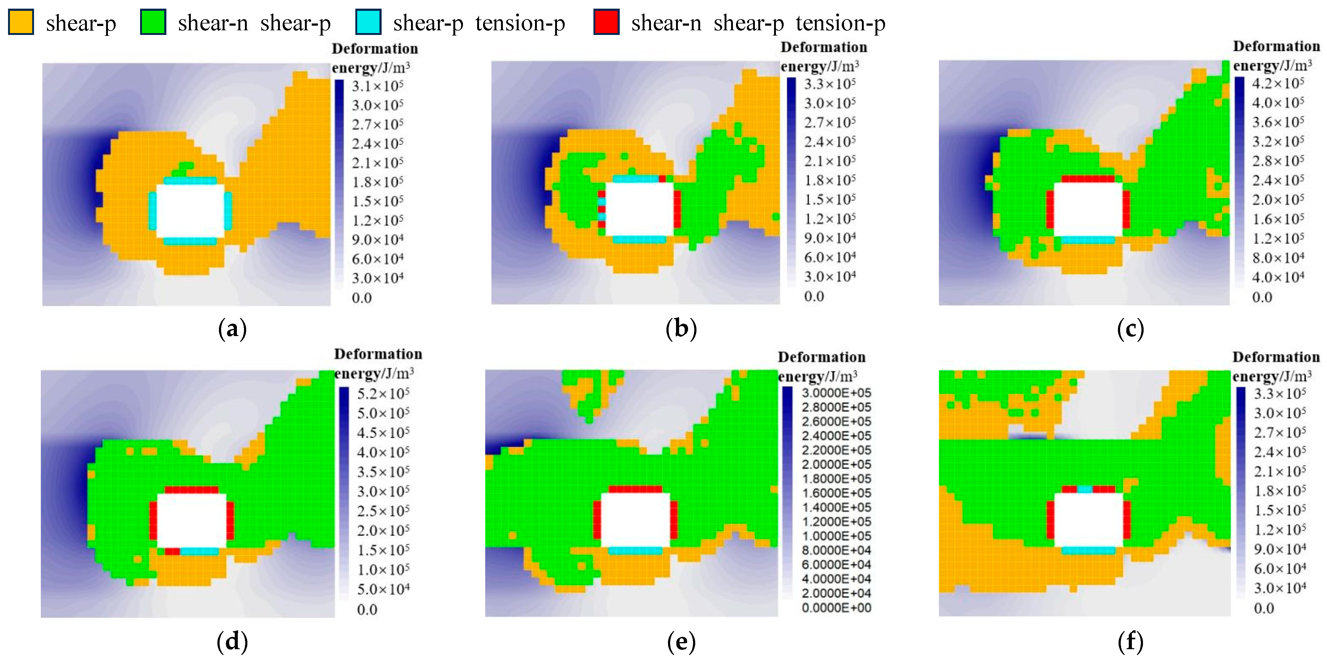 4.2. Correlation Between Energy and Plastic Zones in Retained Roadway Surrounding Rock During Secondary Mining