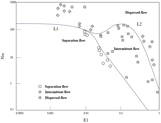 The value of depends on the flow pattern within the wellbore, the Froude number , and the inlet volume liquid hold-up E1, and their relationship is shown in Figure 3: