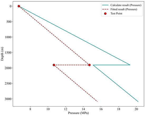 It should be noted that the Beggs–Brill correlation typically overestimates pressure gradients in vertical well sections, which explains the smaller pressure drop in the fitted profile compared to the initial calculation. In practice, the proposed methodology can be adapted to different gas–liquid ratio (GLR) conditions by selecting appropriate multiphase flow correlations, since flow patterns may vary significantly with GLR.