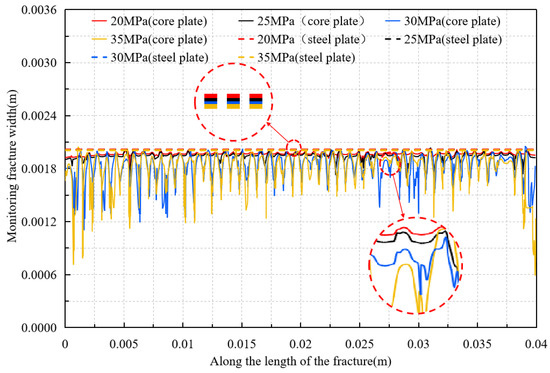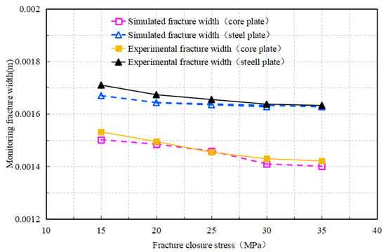 Simulation monitoring fracture width curves of rock and steel plates with different closure stresses.