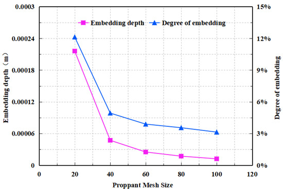 Embedding results of different proppant mesh sizes.