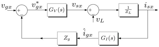 The control block of Figure 8 is implemented in the rotating reference dq frame, to provide the modulation indexes and , as shown in Figure 5. The control laws are defined as traditional proportional-integral functions given by: