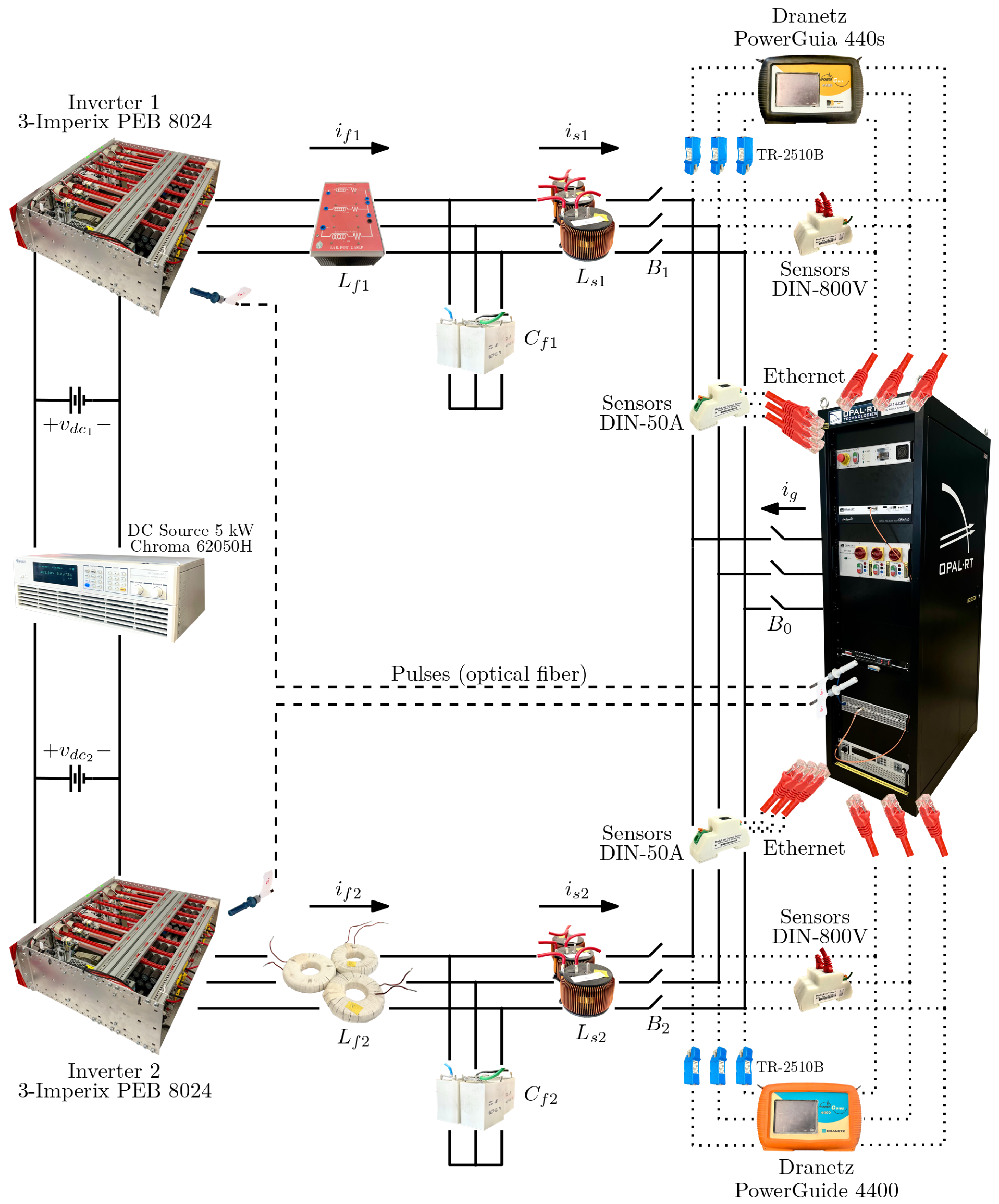 sensed by the Imperix DIN-800V and DIN-50A modules (Imperix ltd., Sion, Switzerland), respectively; and two voltages
