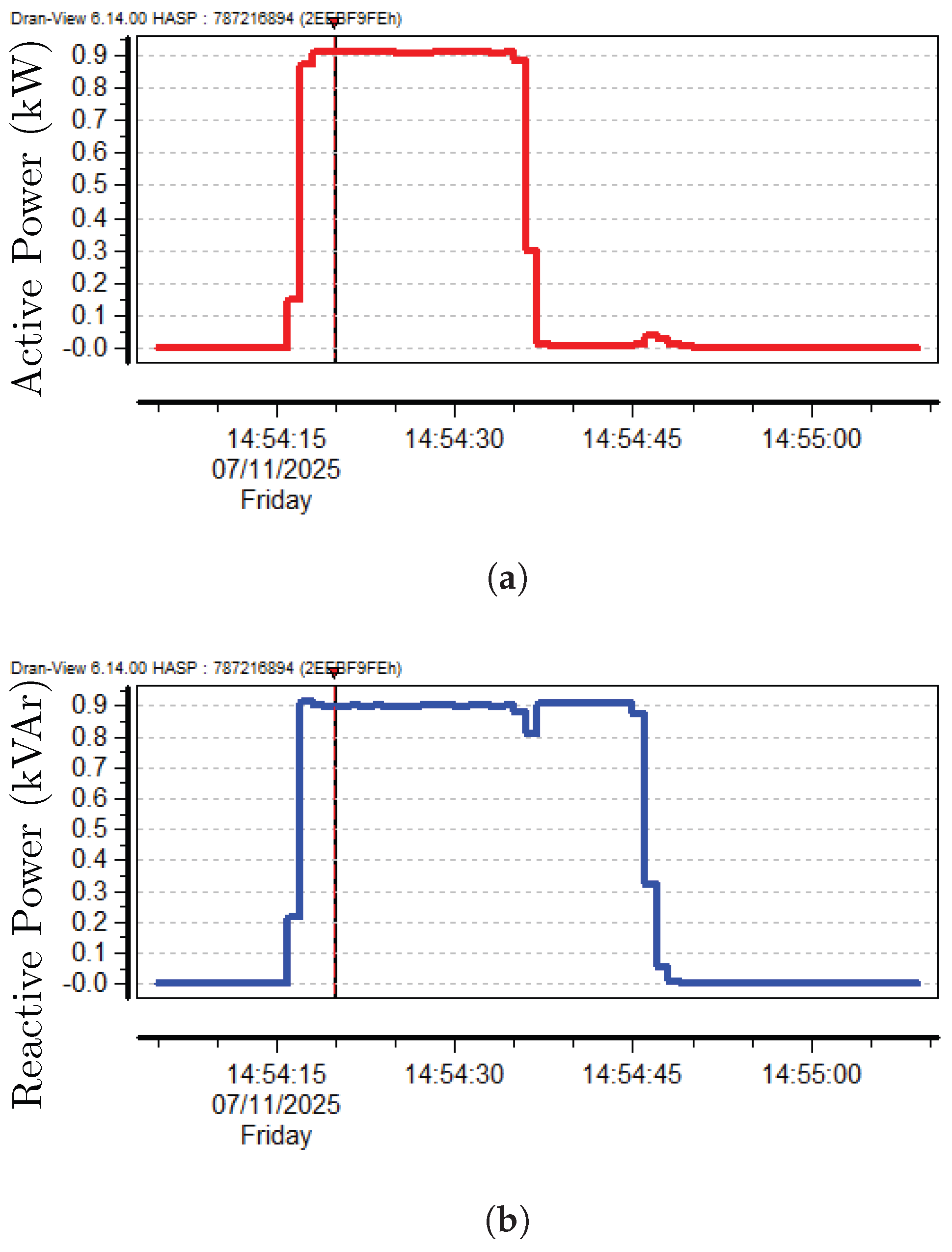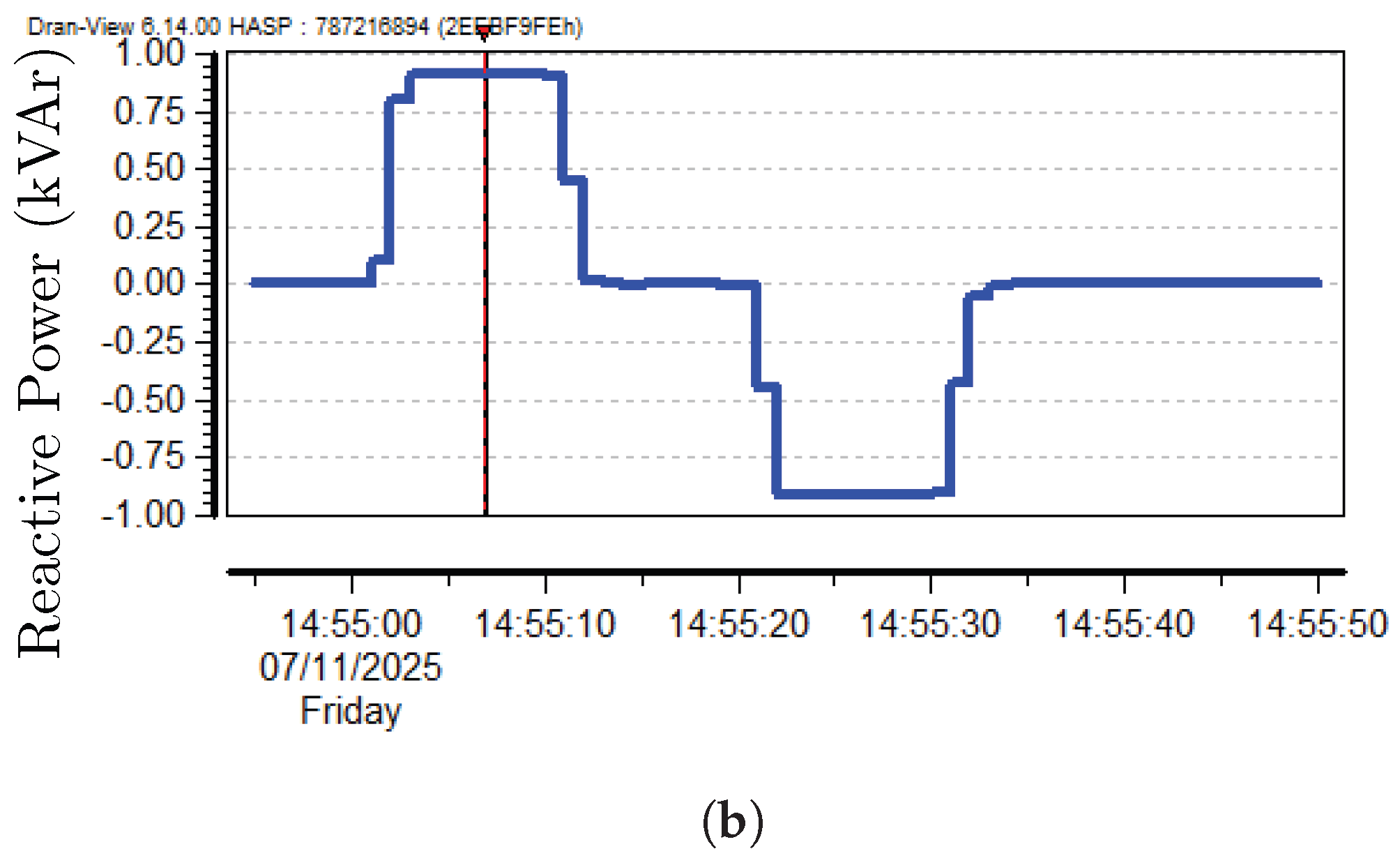 Figure 4b shows active power oscillations, which are significantly higher compared to the previous case. Note that this signal is collected in real time using the RT-LAB model, with a decimation factor of 100 and a nominal time step of