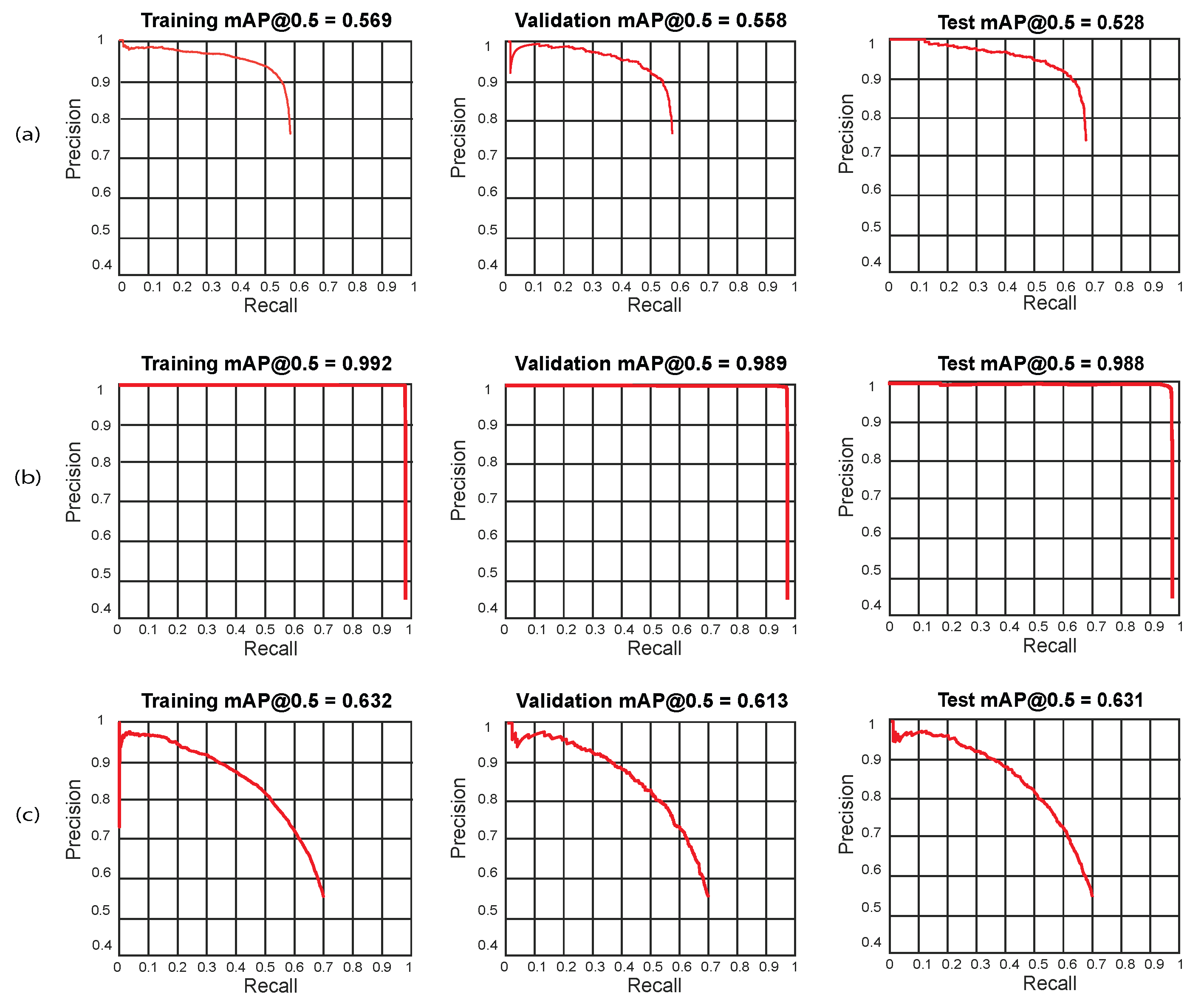 Table 10. Best results for models trained with DarkNet-53 backbone across Train, Validation, and Test sets (mAP@0.5, %).