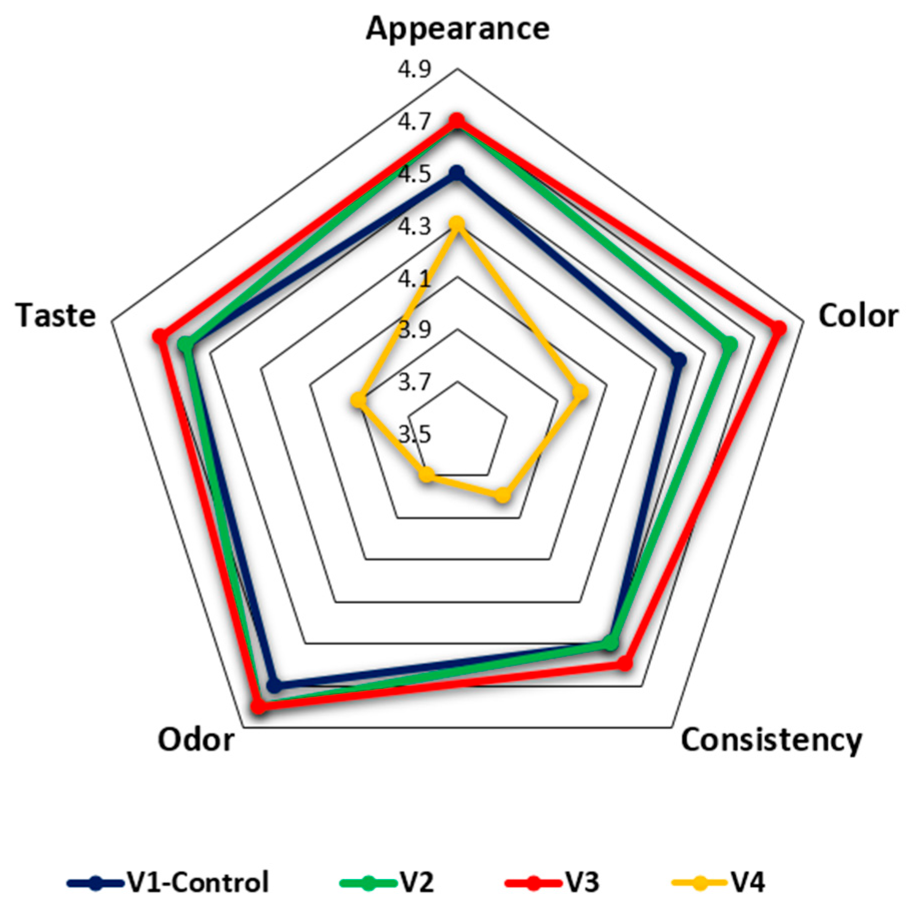 3.5. Sensory Evaluation of a Multicomponent Cereal Supplement