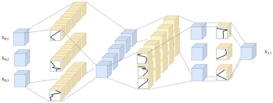 The Kolmogorov–Arnold Network (KAN) is a neural network model based on the Kolmogorov–Arnold theorem, capable of representing complex multivariate continuous functions [31]. Unlike traditional MLPs, the outputs of KAN nodes are not directly subjected to standard nonlinear activations (Figure 1).