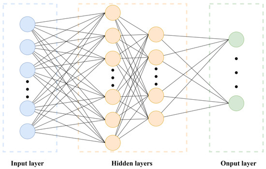 The input layer is responsible for receiving the input information of the network model, usually taking the feature vectors of data samples as the input information. After further processing through multiple hidden layers and the output layer, the output layer provides the experimental results [32]. The number of nodes and layers in the hidden layers can be adjusted according to the specific needs of the experiment. The MLP learns to map input information to output results. To enhance the accuracy of model predictions, the corresponding parameter weights and bias values are continuously updated and adjusted during model training. Activation functions are typically added between layers to introduce non-linear factors.