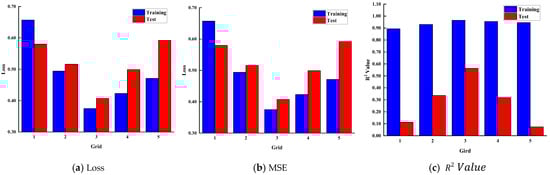 Figure 7 shows the impact of changing the grid on the results. It can be seen that when the grid value varies between 1 and 5, the loss and MSE initially decrease and then increase, while the R2 value initially increases and then decreases. Modifying the Grid affects the training data less but has a more significant impact on the test data. When the grid number is small, increasing the grid can improve the model’s complexity, allowing it to better fit the training data. However, continuing to increase the grid number will further enhance the model’s complexity, potentially leading to overfitting. In cases of model overfitting, the model excels on the training set but underperforms on the test set, causing the loss and MSE to rise and the R2 to fall. This occurs because the model starts capturing noise and insignificant details in the training data instead of generalizing to new data.