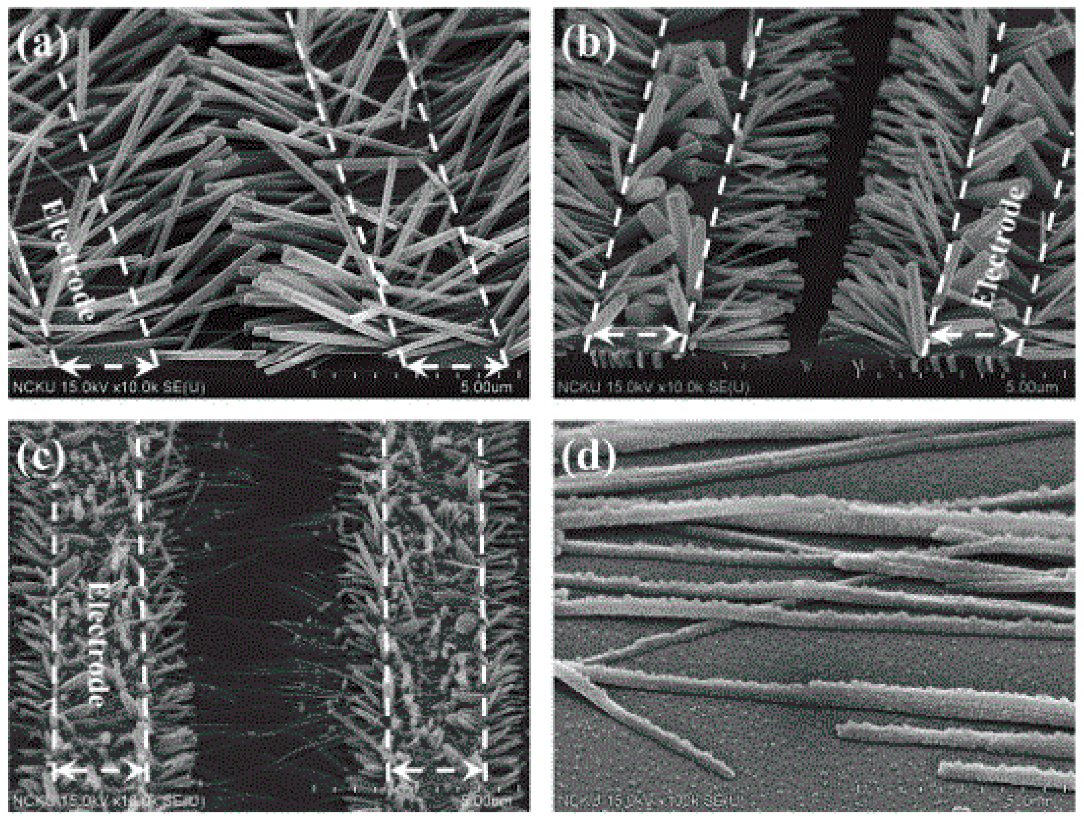 - Shen, G.; Tandio, A.R.; Hong, F.C. Hydrothermally synthesized ultrathin zinc oxide nanowires based field-effect transistors. Thin Solid Film. 2016, 618, 100–106. [Google Scholar] [CrossRef]