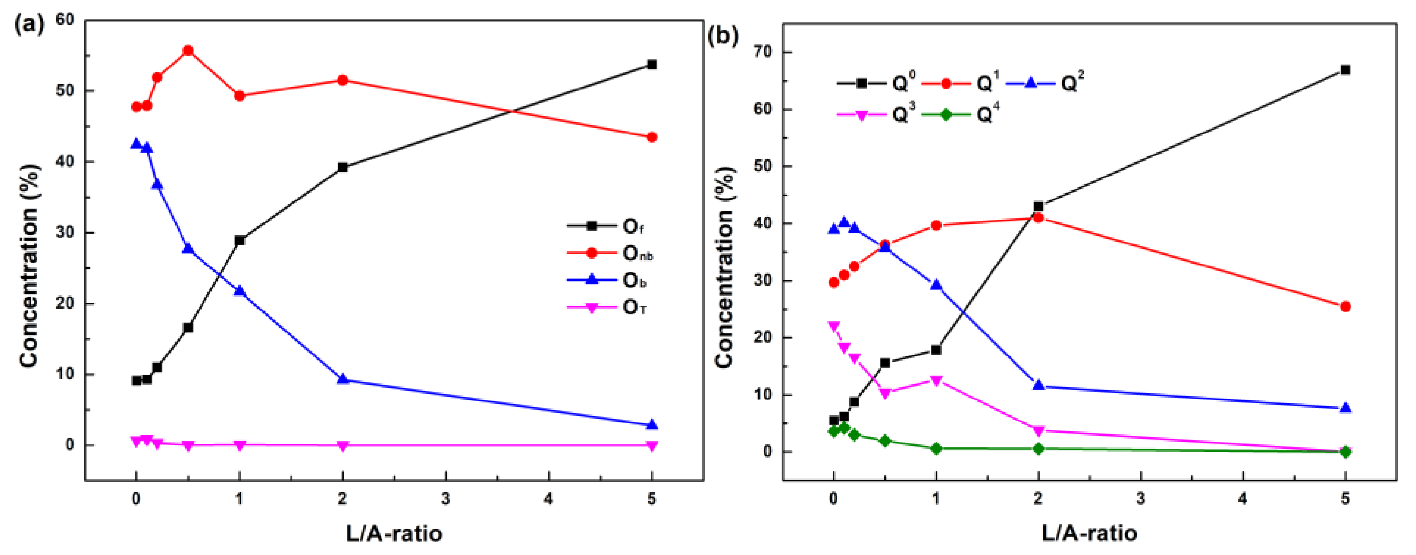 3.3. Effects of La2O3/Al2O3 Ratio on the Viscosity, Electrical Conductivity, and Structure of the Slag